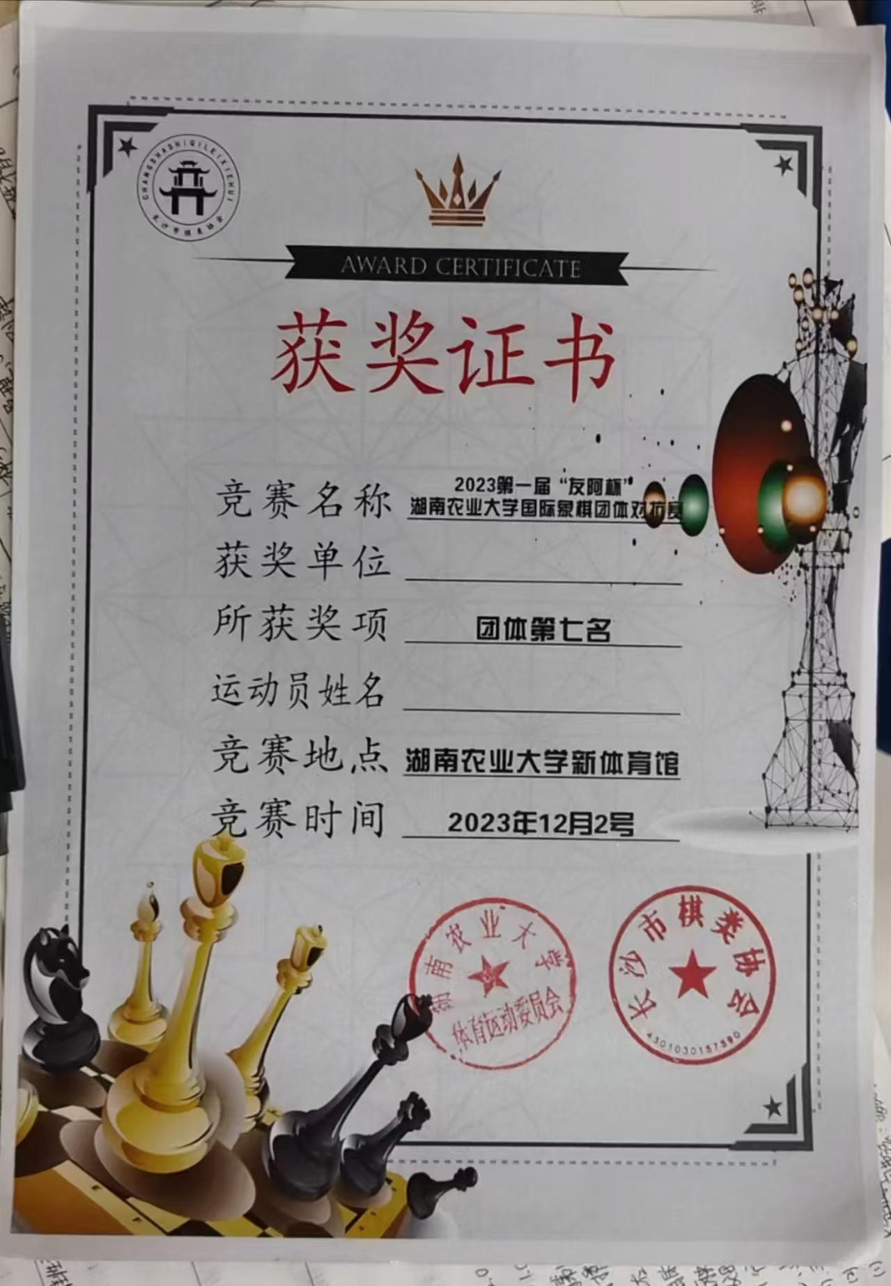 在校园赛事的舞台上,她们并肩出征,共同参与第一届“友阿杯”beat365在线体育官网国际象棋团体对抗赛。赛场上她们齐心协力、沉着应战,凭借团队配合与不懈拼搏,最终拿下第七名的佳绩,在竞技中收获了并肩作战的珍贵情谊,也实现了能力的共同提升。