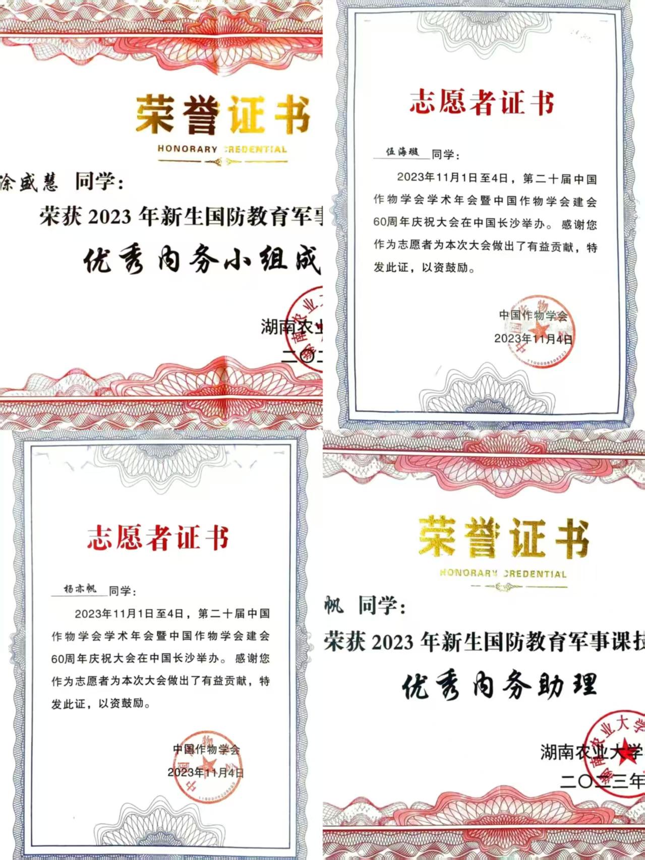 获校二等奖学金,农学院优秀内务助理,校乒乓球团体赛亚军